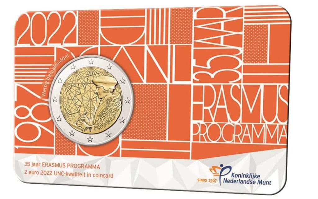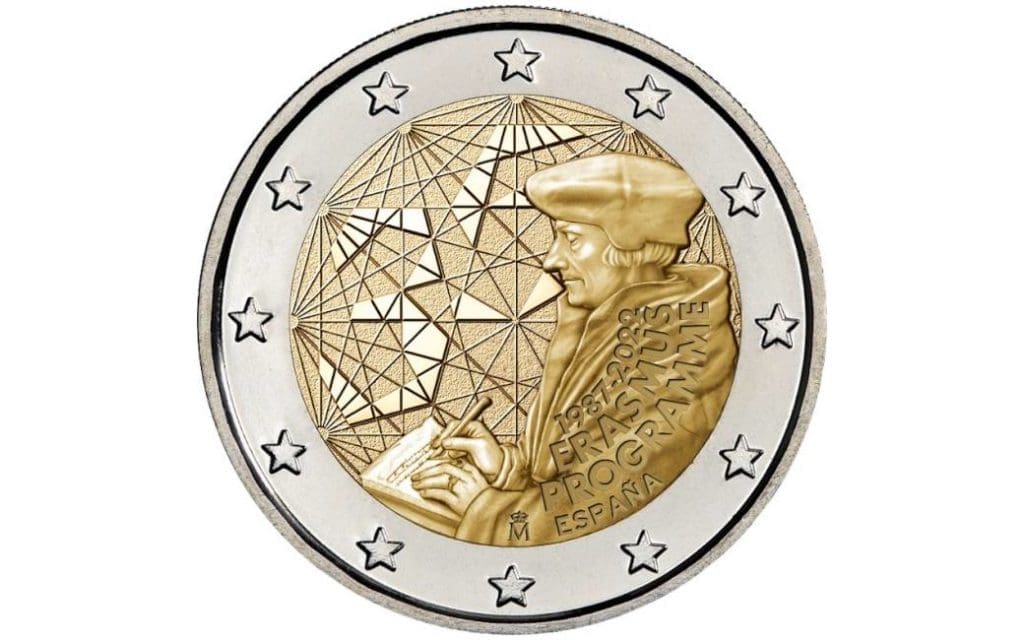 MADRID – Op 1 juli 2022 is opnieuw een zeer speciale 2-euro herdenkingsmunt uitgebracht in Spanje. In dit geval gaat het om een munt in beperkte oplage met een Nederlands tintje. De 2-euromunt heeft namelijk alles te maken met de Nederlander Desiderius Erasmus en het 35-jarig bestaan van het ERASMUS-programma in Spanje en Europa