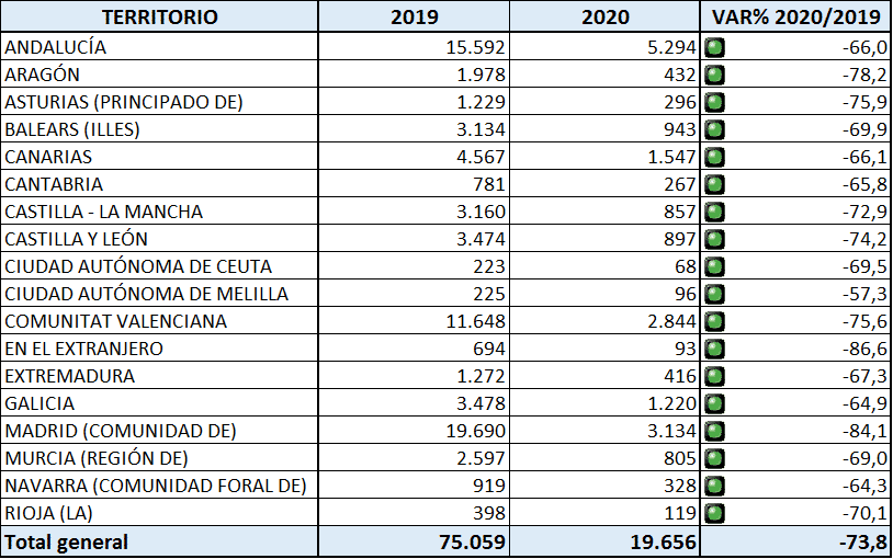 Tabel: Autonome regio vergelijking 2019/2020 (behalve Catalonië en Baskenland)