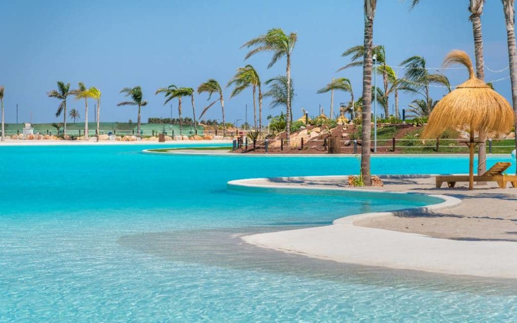 MURCIA – Onlangs werd het bassin van het grootste kunstmatige meer van Europa voor het eerst gevuld met kristalhelder water. Het spectaculaire meer is maar liefst 16.000 vierkante meter groot en oogt paradijselijk dankzij turquoise lagunes met parelwitte stranden en eilanden met wuivende palmbomen. ‘The Lake’ is dé eyecatcher van het nieuwe ‘Santa Rosalía Lake and Life Resort’ aan de Spaanse Costa Cálida in de autonome regio Murcia dat zijn gasten wil laten genieten van Caraïbische vibes. Geen zorgen, want duurzame filtratiesystemen zorgen voor een efficiënt beheer van water en energie, wel zo belangrijk in deze tijd van droogte.