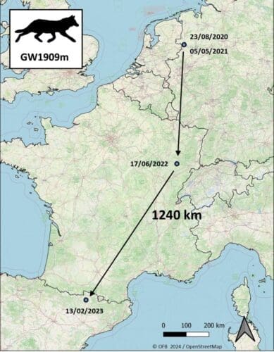 Een opmerkelijke reis van een grijze wolf is onlangs gedocumenteerd dankzij samenwerking tussen Duitsland, Frankrijk en Spanje. Genetisch onderzoek van biologische resten die het dier achterliet, maakte het mogelijk om zijn tocht van maar liefst 1.240 kilometer te reconstrueren. Het is de langste geregistreerde afstand ooit die een Wolf in Europa heeft afgelegd.