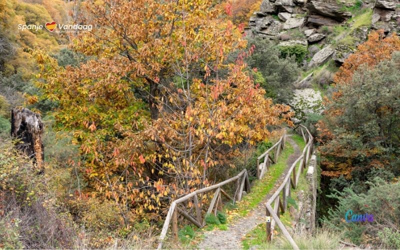 Een andere wandelparel in Spanje tijdens de herfst is El Castañar, gelegen in San Martín de Valdeiglesias, in de Madrid regio. Deze plek staat bekend om zijn indrukwekkende kastanjebomen, die veranderen in een visueel spektakel van gele en oranje kleuren die wandelaars betoveren.