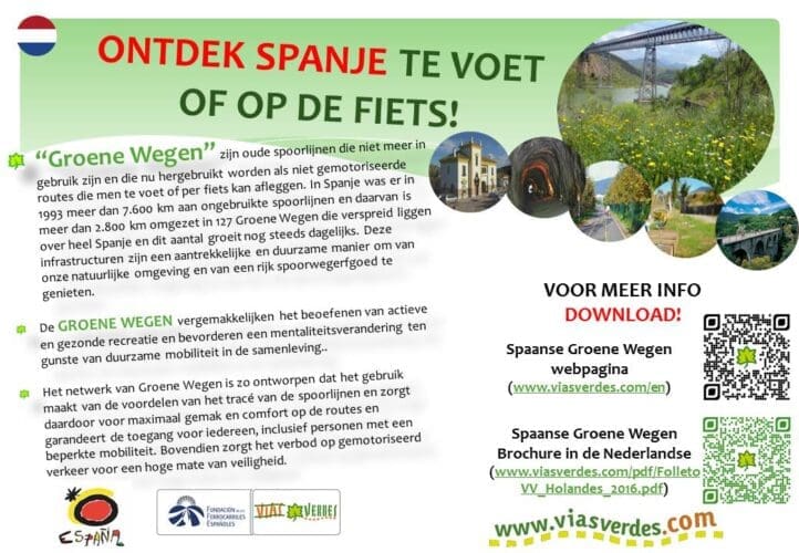 Voordat je aan een Vía Verde begint, is het wel vaak verstandig om informatie in te winnen op de website van de VÍAS VERDES of de folders na te lezen over de mogelijkheden en toestand van de Groene Wegen die men wil gaan bewandelen of fietsen. De informatie is op de website beschikbaar in het Spaans en in het Engels. Meer informatie kun je ook nalezen in deze Nederlandse folder (uit 2016) die je HIER kunt downloaden in PDF.