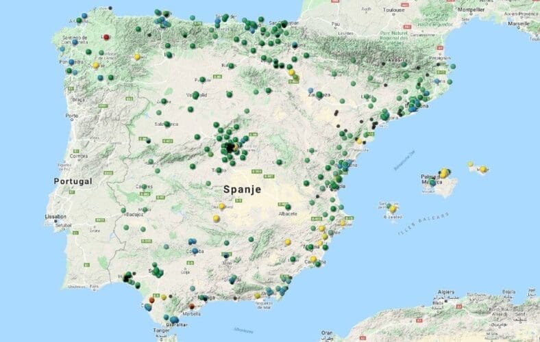 Het gaat om DEZE KAART met de ‘Calidad de Aire’ en DEZE KAART met de ‘Índice Nacional de Calidad de Aire’. In beide gevallen wordt elk uur de actuele informatie van meer dan 500 meetpunten die verspreid door Spanje staan verzameld en getoond op de websites en met interactieve kaarten.