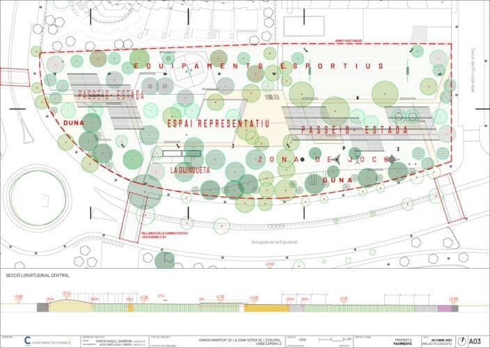 Het ‘Parc de l’Esquirol’ krijgt een oppervlakte van 9.000 vierkante meter en wordt onderverdeeld in drie lange delen met een wandelgebied met veel schaduw en cipressen om een afscheiding te creëren met de woningen naast het park. Naast de speelplaatsen voor kinderen, fitnessapparatuur en een skatepark zal er ook een bar of chiringuito komen met een terras als aanvulling op de chiringuitos die al op het strand staan, Wind Cambrils en de Xiringuito Mar de Terres.
