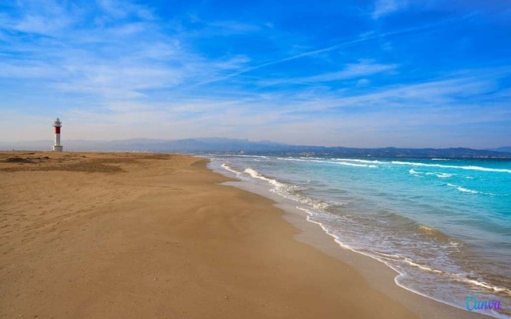 Dit strand is gelegen in de Ebro Delta in het zuiden van de provincie Tarragona in Catalonië. Naast dat dit een van de langste zandstranden van Spanje is, is het ook een strand dat in meerdere films te zien is. Dat is mede te danken aan de emblematische vuurtoren die o.a. de film Sahar met Penélope Cruz te zien is en de uitgestrekte duinen.