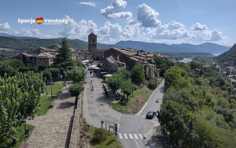 Vervolgens arriveert men in Aínsa, waar de Ara en de Cinca rivieren samenkomen in het Mediano-stuwmeer. Dit pittoreske dorp wordt gekenmerkt door zijn middeleeuwse architectuur en staat bekend als een van de mooiste dorpen van Spanje. De Plaza Mayor biedt een perfecte gelegenheid om te ontspannen en te genieten van lokale lekkernijen, terwijl de Santa María-kerk rust en contemplatie biedt. Het kasteel van Aínsa, een Cultureel Erfgoed, kan als decor dienen voor een romantische ridderstrijd.