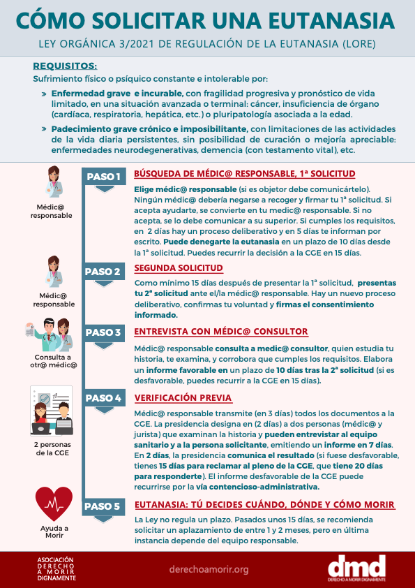 Het is belangrijk op te merken dat euthanasie in Spanje alleen kan worden uitgevoerd door een arts, en dat de procedure moet worden uitgevoerd in een ziekenhuis of medische instelling. De patiënt heeft het recht om te kiezen wie bij de euthanasieprocedure aanwezig is, en kan ook beslissen over de manier waarop de euthanasie wordt uitgevoerd.