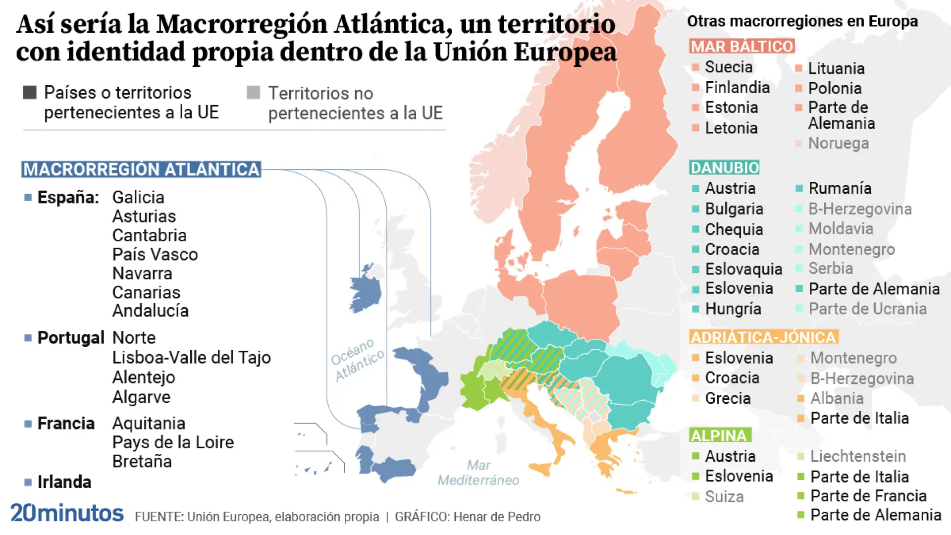 De Europese Unie bestaat momenteel uit 27 onafhankelijke en soevereine landen. Hoewel alle lidstaten gelijkwaardig zijn, hebben sommigen meer invloed bij het nemen van besluiten dan anderen. Dit heeft te maken met factoren zoals economische kracht, bevolkingsomvang, politieke macht en defensiecapaciteit. Na het vertrek van het Verenigd Koninkrijk zijn Duitsland, Frankrijk, Italië en Spanje de vier grootmachten binnen de EU. Maar wat is een macroregionale strategie en wat heeft dat te maken met zeven autonome regio’s in Spanje?