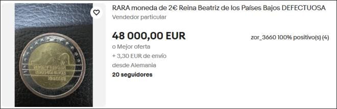 Een eenvoudige 2-euromunt uit Nederland zorgt momenteel voor veel ophef onder verzamelaars. In Spanje en wereldwijd op eBay wordt namelijk een zeldzaam exemplaar met een fabricagefout aangeboden voor maar liefst 48.000 euro, zo melden meerdere Spaanse nieuwswebsites.