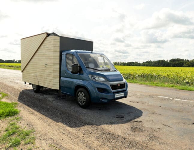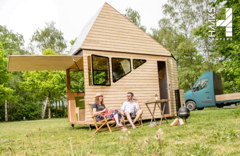 De kampeerauto/tiny-house combinatie biedt een afneembaar woongedeelte dat bestaat uit twee verdiepingen met het leef, badkamer en keuken deel beneden en het slaapdeel boven. Deze combo is gebouwd op een onderstel van een Fiat Ducato die inbegrepen is in de niet al te goedkope prijs van 129.982 euro ex. btw.