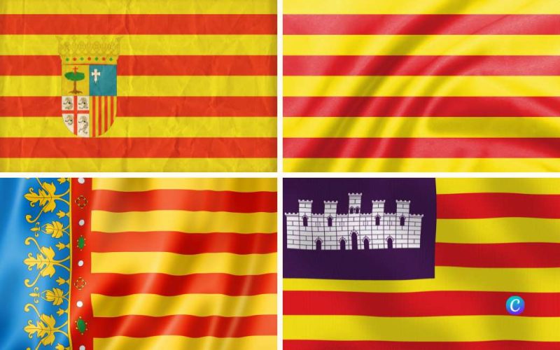 De vlaggen van Aragón, Catalonië, Comunidad Valenciana en Balearen hebben op het eerste gezicht veel overeenkomsten. Ze hebben allemaal horizontale strepen in de kleuren geel en rood. Toch zijn er ook enkele subtiele verschillen tussen deze vier regionale vlaggen.