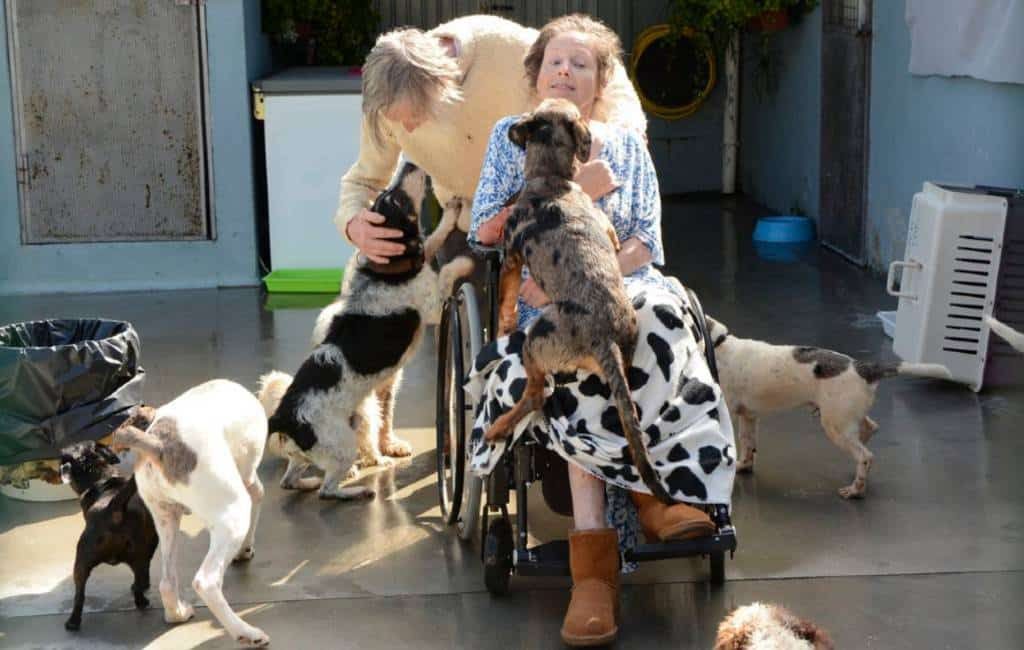 Als Suzanne en Christ naar het dierenasiel rijden weten de honden dat hun baasjes eraan komen en worden ze wild. Eenmaal ter plaatse begint de vriendelijke strijd tussen de honden om een plaatsje te bemachtigen op en rond de rolstoel van Suzanne.